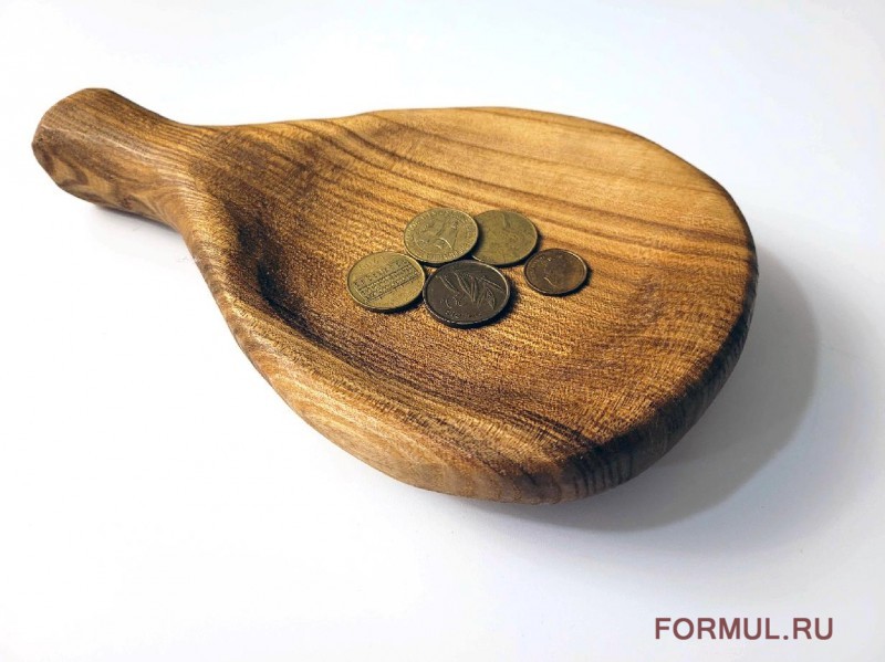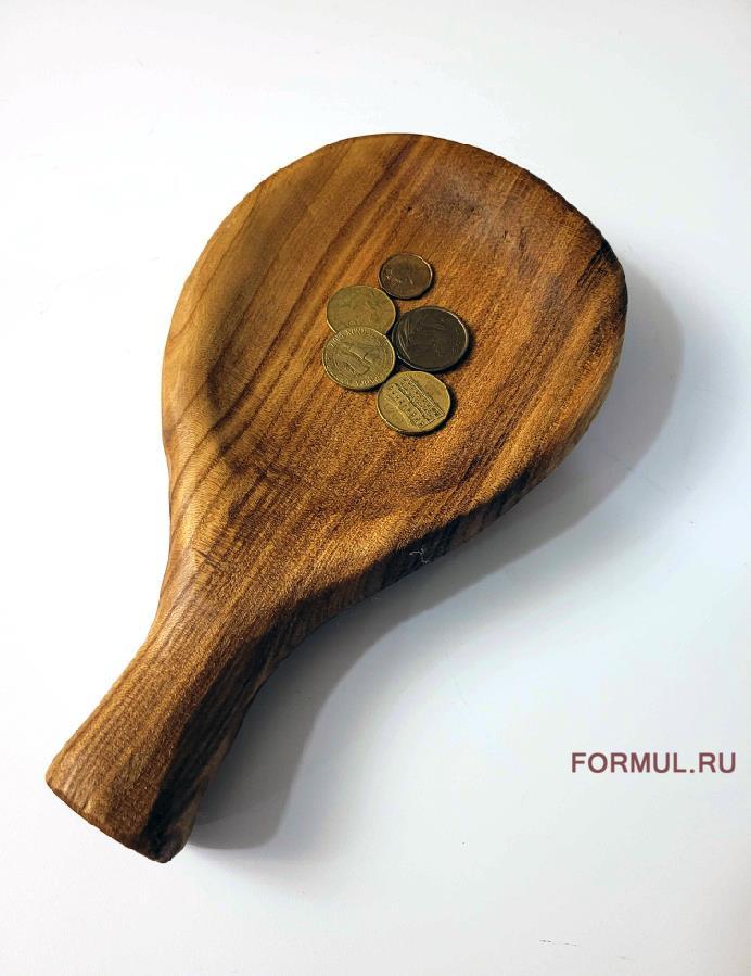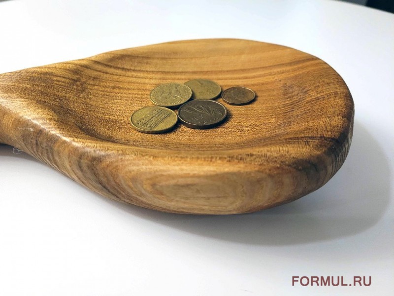 Стильная монетница в форме небольшой лопатки. Выполнена из натурального массива дуба. Приятная на ощупь и достаточно тяжелая (около 700гр.) Насыщенный цвет дерева и красивый естественный рисунок древесины завораживает.