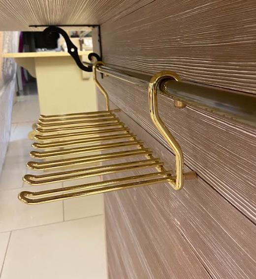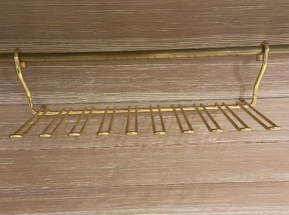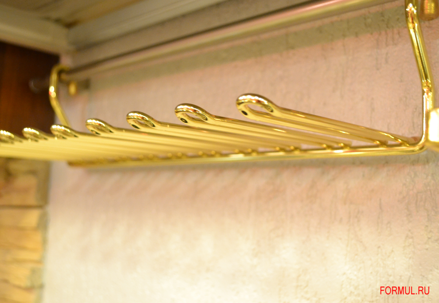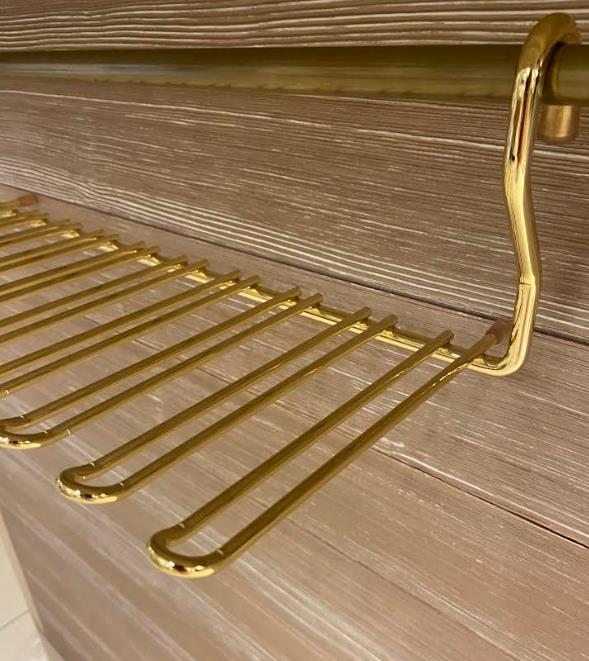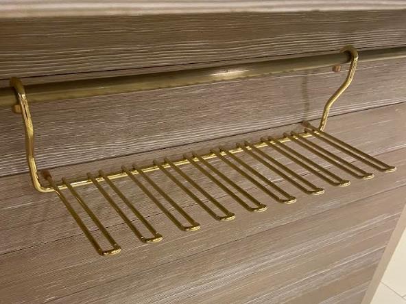 Аксессуары, как и мебель, радуют разнообразием по форме, специфическому назначению, предоставляемому удобству и качественным материалам, из которых они сделаны. Инновационные технологии позволяют сделать полочки, решетки-сетки, держатели прочными и красивыми. К числу таковых в первую очередь относятся изделия итальянского бренда Vibo. Эффектно держатель будет выглядеть не только в кафе-баре, но и на домашней кухне или в столовой. Вам не нужно будет прятать бокалы в шкаф, традиционно расставляя их на полочках. Приспособление выполнено из металла, его отделка – глянцевое золото– очень нарядна. Держатель с помощью изящно выгнутых ушек просто навешивается на рейлинг, специальную трубу-держатель для такого рода элементов. Интерьеры с использованием брендовых изделий становятся неповторимо-оригинальными, подчеркивая отличный вкус и достаток хозяев дома. Материал: металл Отделка: глянцевое золото Размер: