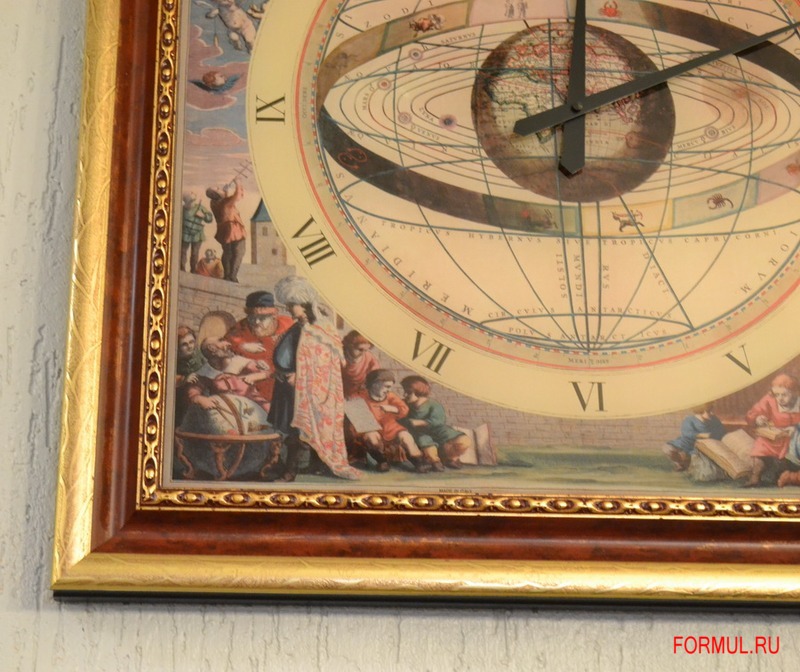 Часымодель Tolomeo Закаленное стекло, художественная шелкотрафаретная печать, рама из резного дерева с золотой фольгой.
