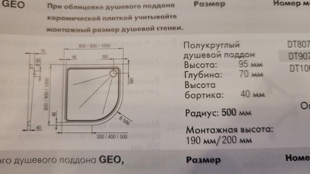 Поддон Geo в комплекте. Размеры поддона 90х90, высота поддона 70 мм