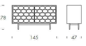 Комод Honey от фабрики Tonin Casa — настоящее произведение искусства от итальянских мастеров. У комода замечательное оформление фасада ячейками из массива, которое притягивает взгляд и вызывает восхищение. Плоские фигурные дощечки напоминают соты.