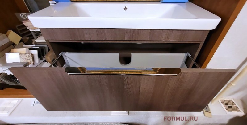 Тумба имеет размеры 105 см в длину и оснащена одним выдвижным ящиком с удобной ручкой. Это позволяет удобно хранить все необходимые принадлежности для ухода за собой.