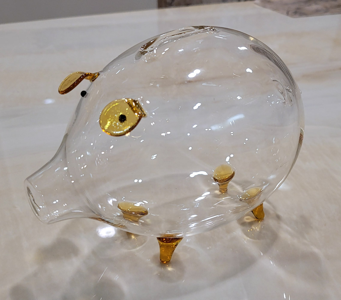 копилка – один из них. Это ручная работа, итальянских стеклодувов – которая может украсить ваш