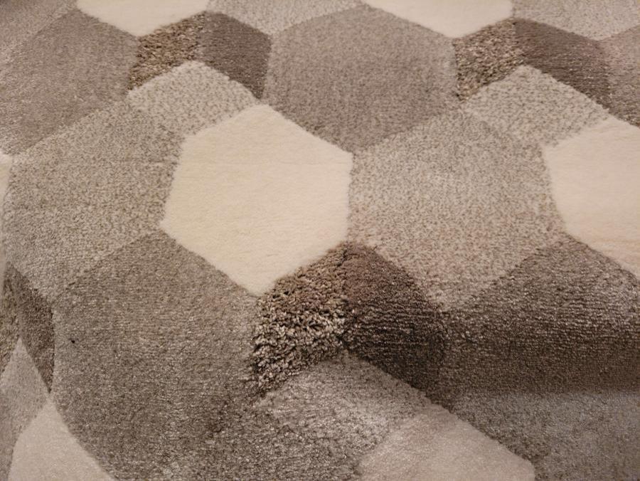 Трехмерный рисунок этого ковра основан на усеченной диаграмме октаэдра, охарактеризованный 6 квадратными сторонами и 8 шестиугольными сторонами.