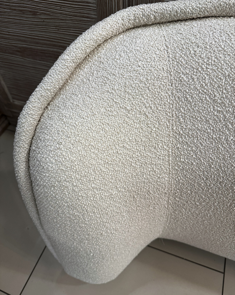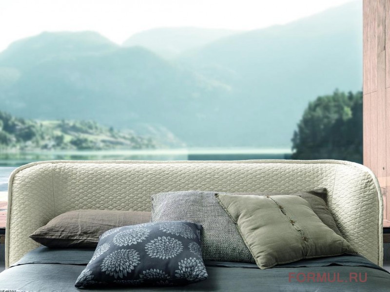 Широкое изголовье с мягким, обволакивающим дизайном призвано сделать моменты отдыха такими же уютными, как естественные объятия. На каркасе из массива ели лежит сиденье из пенополиуретана, обтянутое холлофилом и хлопчатобумажной тканью. Подушки спинки выполнены из пенополиуретана и обтянуты холлофилом с хлопковой тканью.