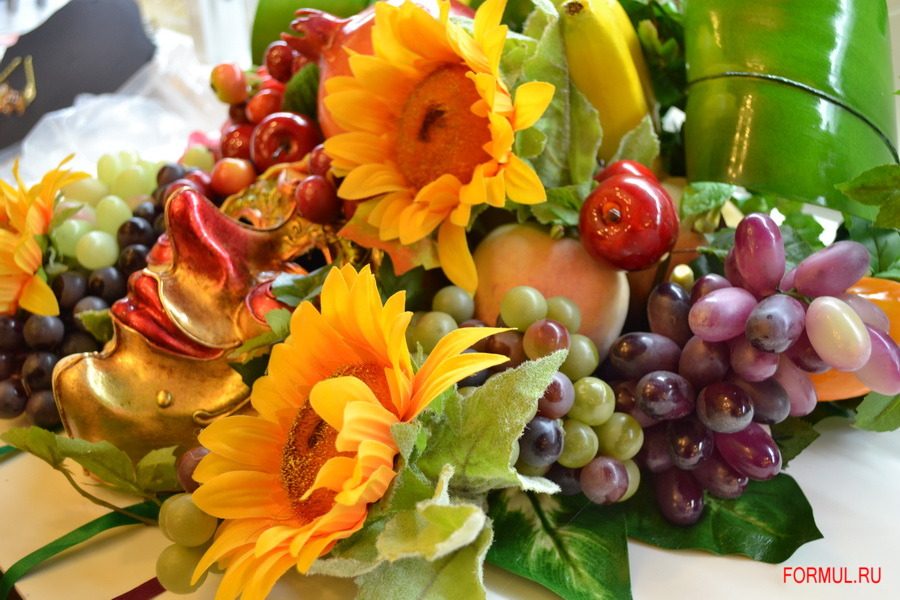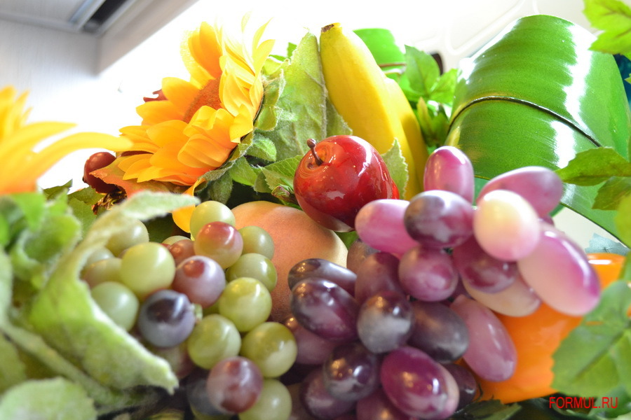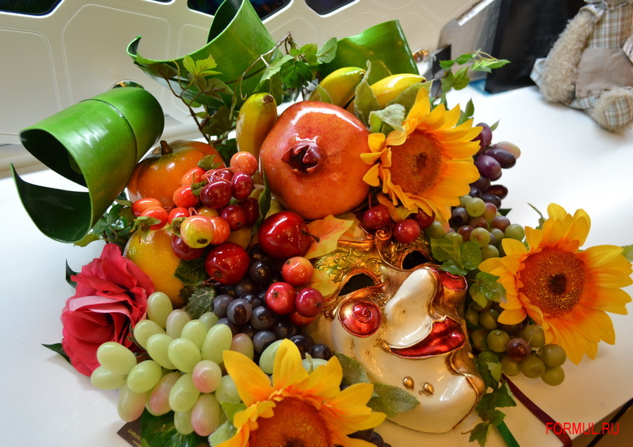 Материалы: папье-маше, краска, декоративные фрукты.