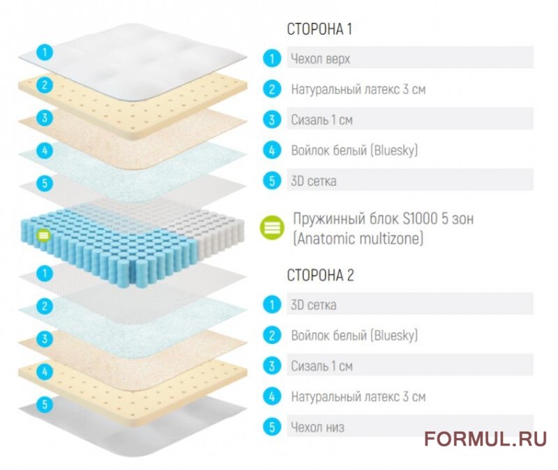 Материалы: пружинный матрас с разными степенями жесткости в зависимости от стороны