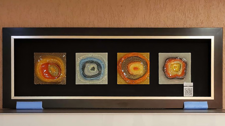 Стеклянные части размещены на холсте из натуральной ткани.