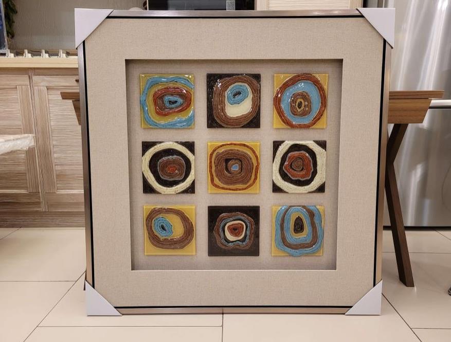 В композиции воедино соединены девять квадратов с красочным абстрактным рисунком. Панно можно преподнести в качестве уникального презента родным, близким, друзьям или партнерам по бизнесу.