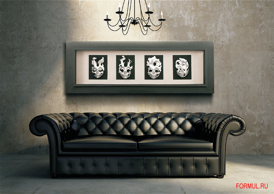 Это штучное изделие станет идеальным декором в интерьере в стиле «ар деко». Четыре объемные венецианские маски — символ знаменитого на весь мир карнавала. Они слегка напоминают классические карнавальные маски, но в целом выполнены в своеобразной манере мастера.