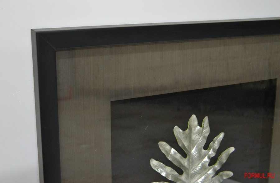 Настенное панно из металла в черной деревянной раме под стеклом, цвет металлик.