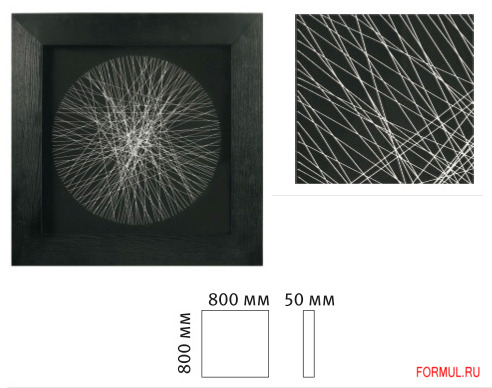 Настенное панно из нитей в черной деревянной раме под стеклом, цвет белый.