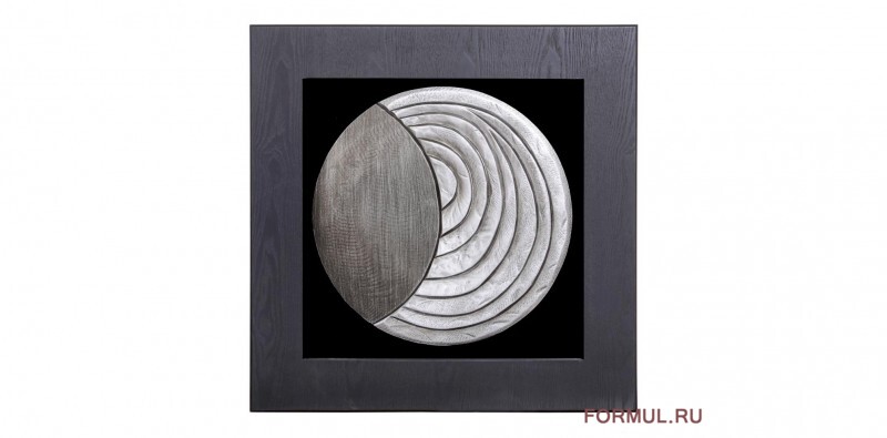 Панно "Начало затмения" — это настенное панно из фрезерованного МДФ в раме из шпонированного МДФ под стеклом. Цвет рамы черный с текстурой дерева, цвет панно - серебристый металлик. Подложка выполнена из фанеры обтянутой черным холстом.
