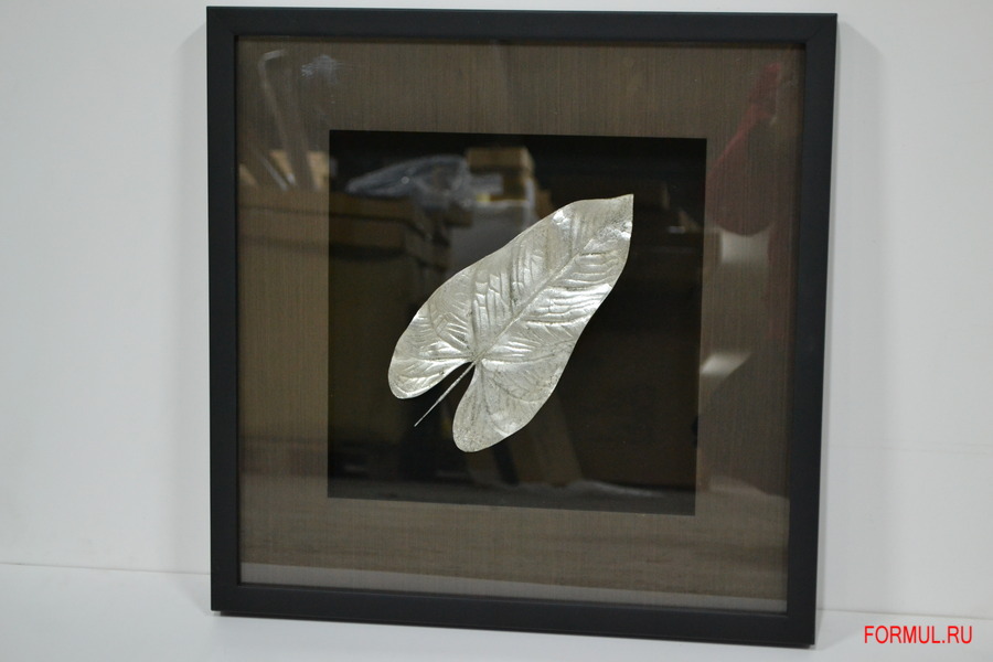 Панно Большие листья 2 из Италии фабрики Bello Pittura выполнено в современном стиле. Изящный серебряный лист белокрыльника — символ вознесения, чистоты, энергии изобилия. Он олицетворяет союз между духовным и материальным в этом мире. Поэтому имеет смысл повесить панно на стену в качестве талисмана. Белокрыльник или каллы вообще считаются знаком нежной женской красоты, любви. Тем, кто хочет привлечь в свою жизнь счастье в личной жизни, эзотерики рекомендуют украсить комнату горшком с цветком или просто повесить изображение. Также растение обладает удивительной способностью защищать жилище от воздействия негативной энергии. Создает ощущение спокойствия и душевного благополучия. Настенное объемное панно выполнено из металла и помещено в черную деревянную раму под стеклом. Изделие в быту не требует особого ухода. Достаточно протирать сухой ветошью от пыли.