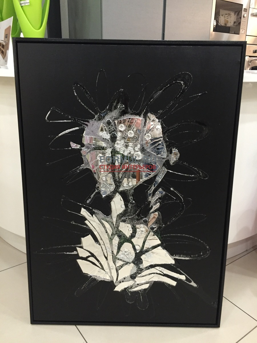 Панно Franco Bertozzini Vision B– это две фантазийные хризантемы, изображенные на черном фоне. Одна уже распустилась и предстала во всей своей красе, а другая вот-вот раскинет свои игольчатые лепестки. Все стильно и чрезвычайно изысканно. А черный фон дарит особенное настроение, цветы на нем – из зеркальных капелек. Панно из коллекции итальянского мастера уникально и станет необычным дополнением вашего интерьера.