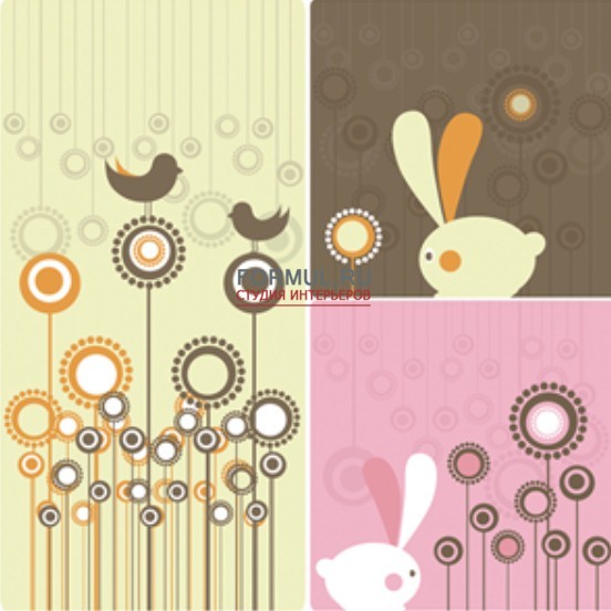 В детской неимоверно важно преобладание спокойных пастельных тонов, без слишком ярких, утомляющих элементов. Пофантазировав вместе с детьми, можно увидеть не только изображенное на холсте, но и представить происходящее за его пределами, ведь прежде чем присесть на цветы, птички весь день щебетали в лесах и садах. Вот милый зайчишка, а он станет малышу верным другом, - встретил розовый рассвет и утомившись за день, прискакал в свой дом на закате... Это забавно, колоритно и радостно. Не отводя от картины взгляда, можно увидеть и больше - здесь мир чудес, загадки, тайны... И в дом непременно придут свои, неповторимые сказки.