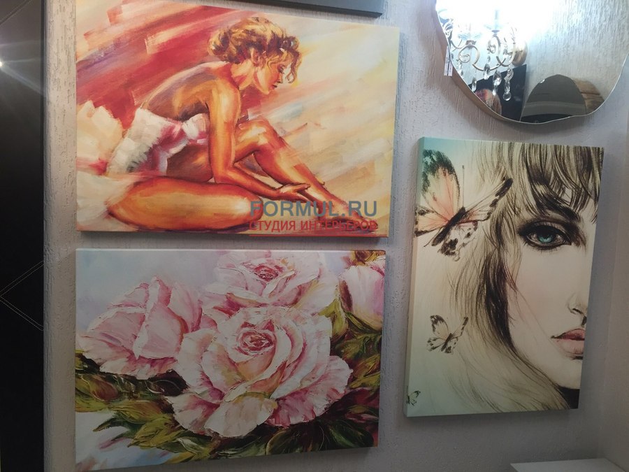 Отделка: Декоративная панель, холст из хлопка, акриловые краски.