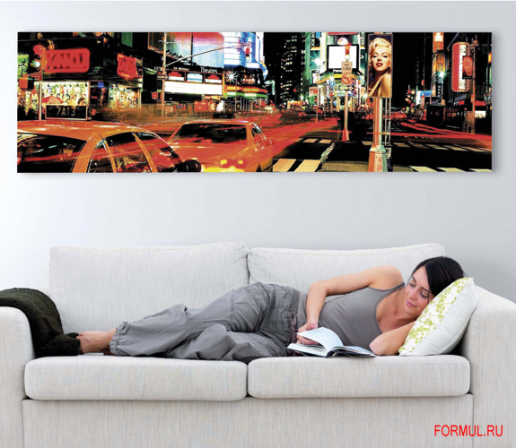 Глянцевая поверхность полотна и яркие, насыщенные цвета великолепно передают блеск огней ночного города. Затягивает, растворяет в себе и ты уже не в своей квартире или офисе, а на дорогах Лондона, Нью-Йорка или Москвы.