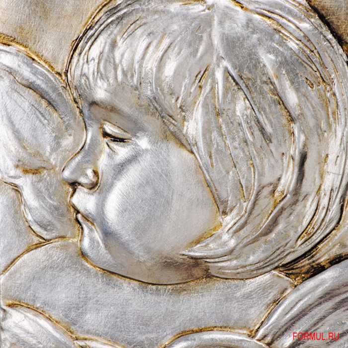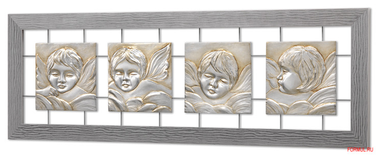 Изготовленное вручную и украшенное серебряной и золотой фольгой, оно своим реалистичным рельефным изображением ангелов необыкновенно приятно для глаза. Деревянная рама цвета серого жемчуга дополняет панно и обеспечивает единство его образа.