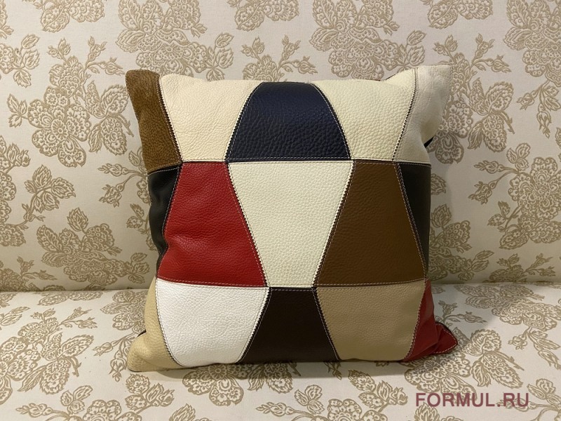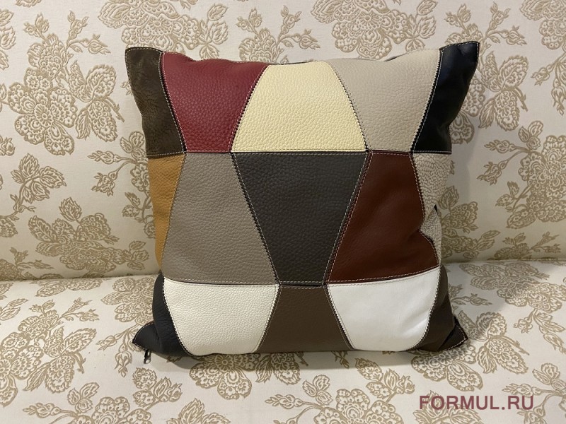 Изделие выполнено из натуральной кожи, выкрашено красками, безопасными для здоровья. Швы между лоскутами надежно фиксируют модель и придают ей формы. Такие творения сделают более комфортабельными диван, подоконник, кровать, лавочки – все то, что хочется оформить более мягким, более теплым.