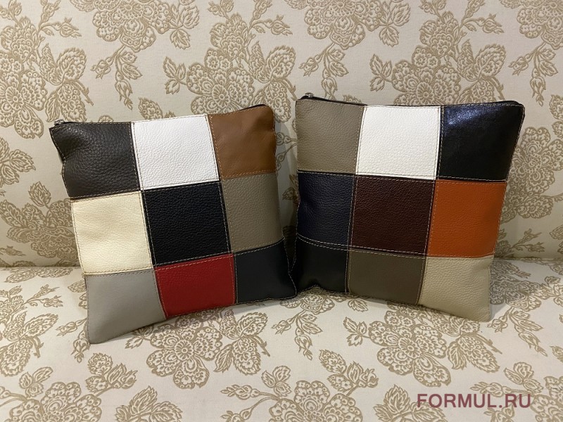 Изделие выполнено из натуральной кожи, выкрашено красками, безопасными для здоровья. Швы между лоскутами надежно фиксируют модель и придают ей формы. Такие творения сделают более комфортабельными диван, подоконник, кровать, лавочки – все то, что хочется оформить более мягким, более теплым.