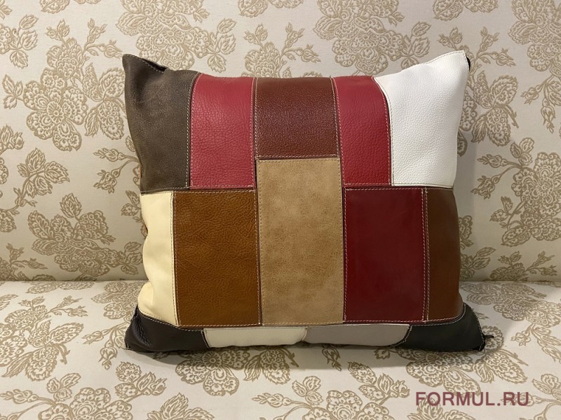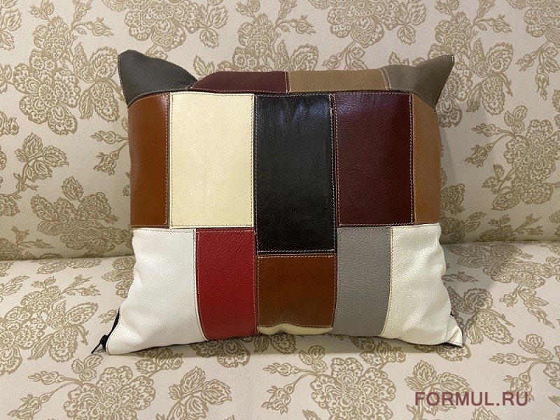 Изделие выполнено из натуральной кожи, выкрашено красками, безопасными для здоровья. Швы между лоскутами надежно фиксируют модель и придают ей формы. Такие творения сделают более комфортабельными диван, подоконник, кровать, лавочки – все то, что хочется оформить более мягким, более теплым.