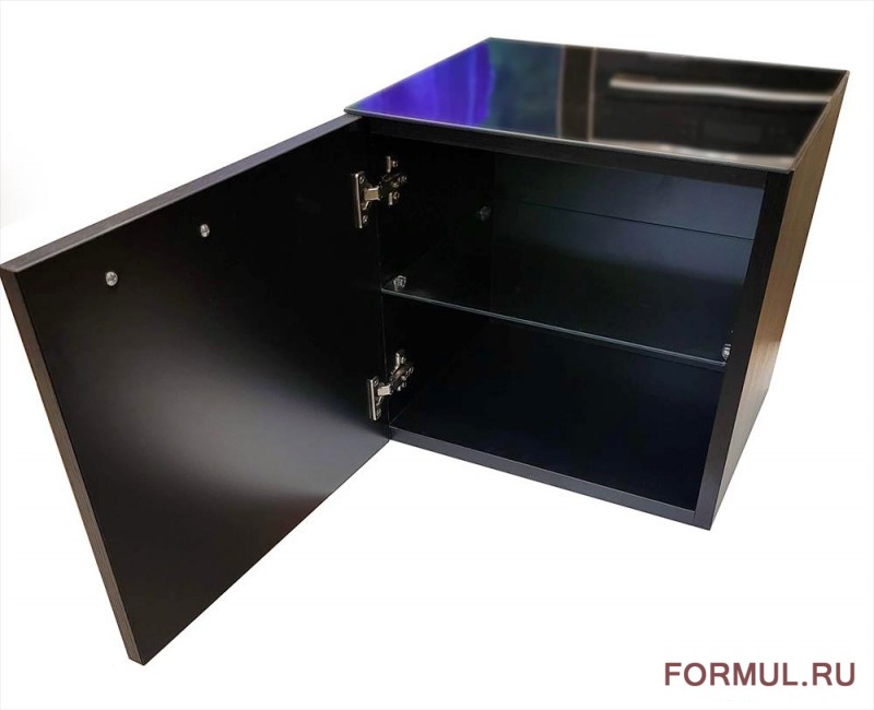 Отделка: фактурный ламинат, тонированное черное стекло