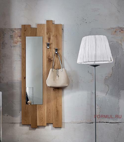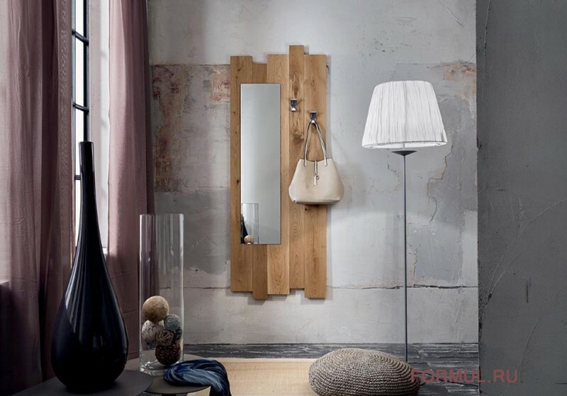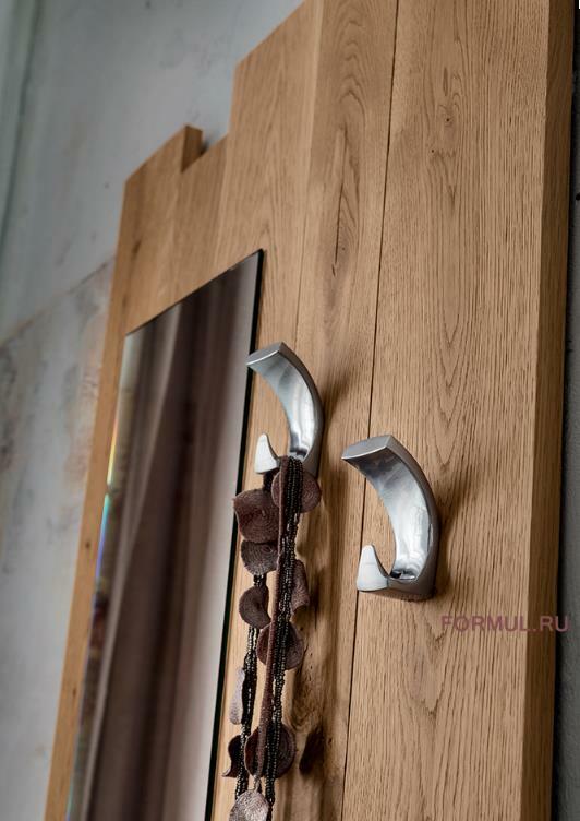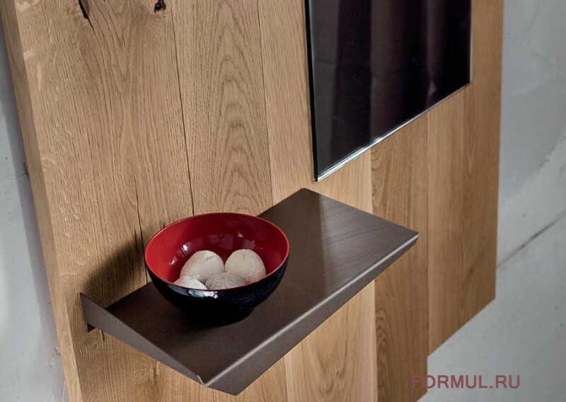 Композиция из массива дуба с зеркалом, толщ. 4 мм. Полки из массива дерева с металлической кромкой с эпоксидным порошковым покрытием. Задает тон прихожей и подчеркивает приверженность минималистичному стилю интерьера.