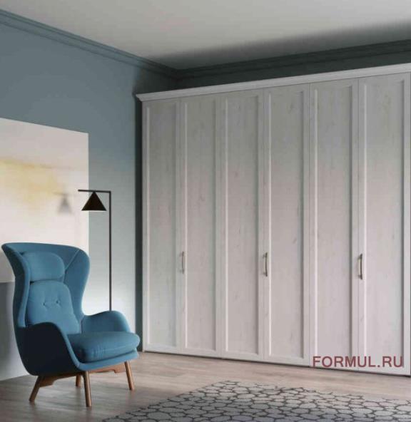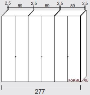 Распашной шести створчатый шкаф. Наполнение шкафа - в каждой секции две штанги для одежды и полка.