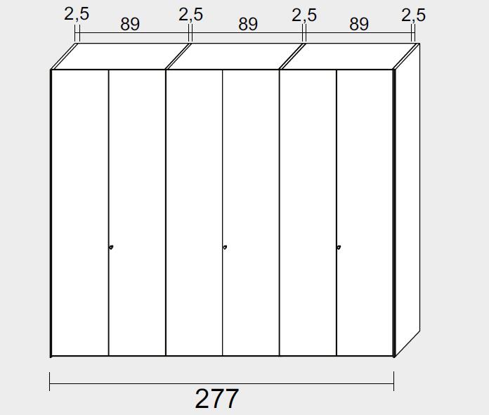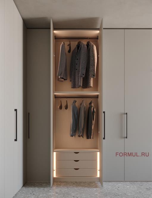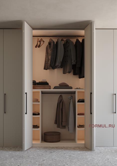 Наполнение шкафа: в каждой секции 1 полка и две штанги для одежды.