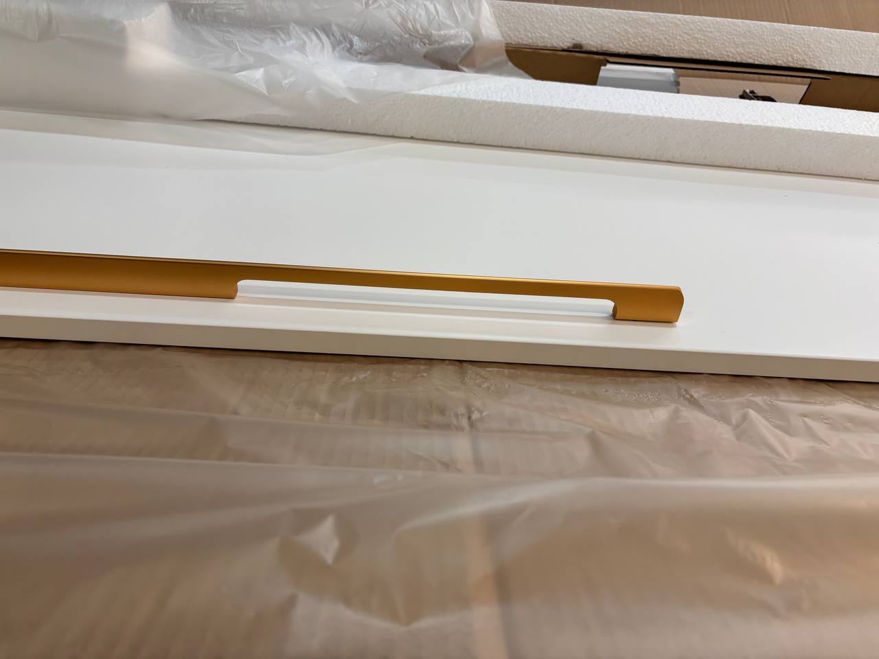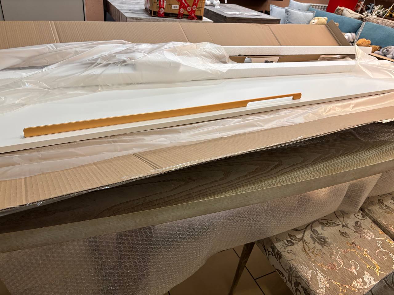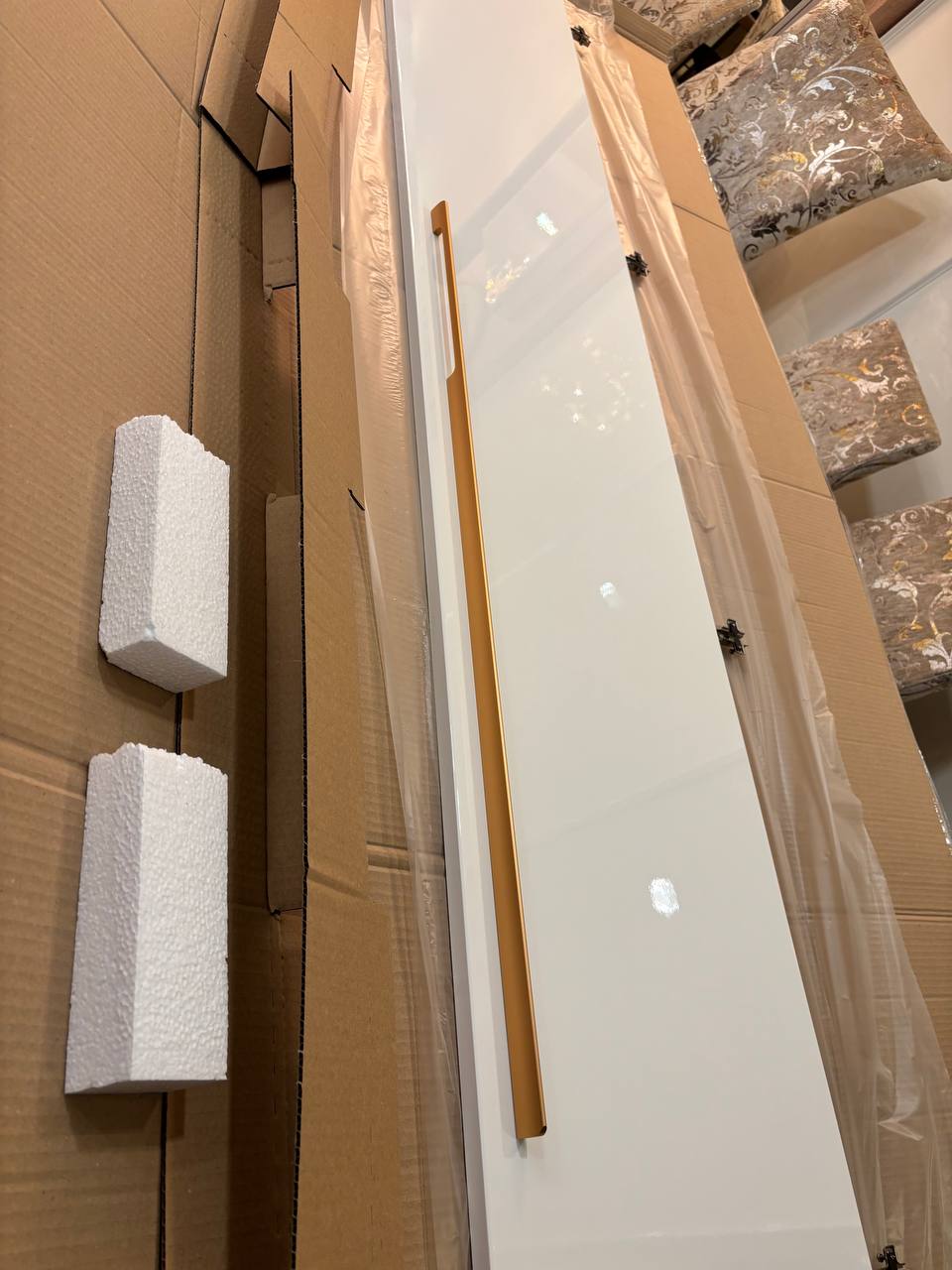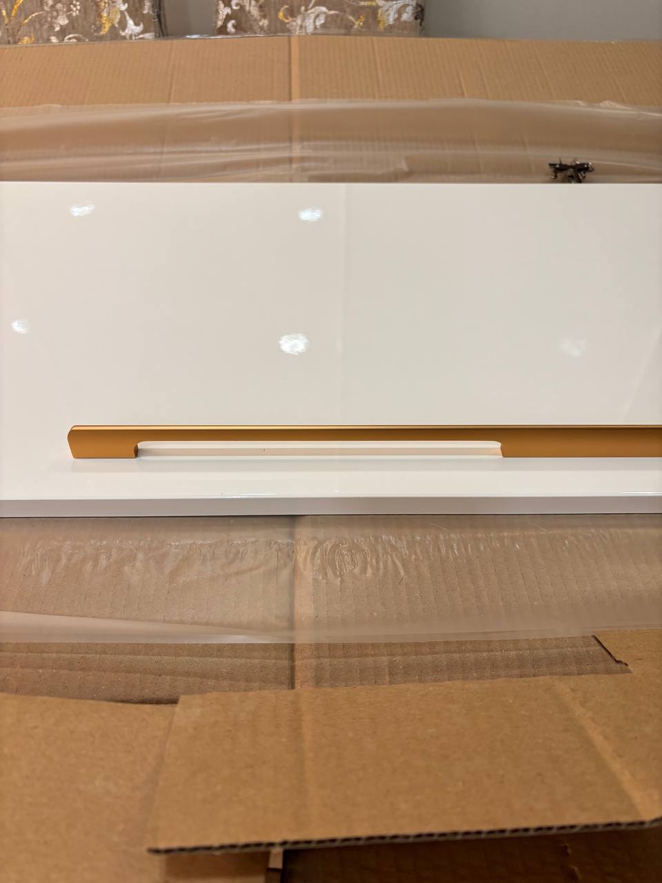 Материалы и отделка: корпус из высококачественного ДСП, итальянская фурнитура, отделка — белый глянцевый лак, ручки - белые