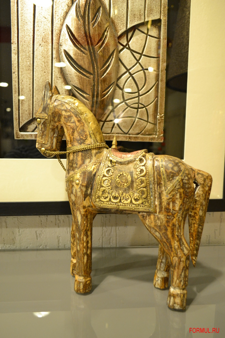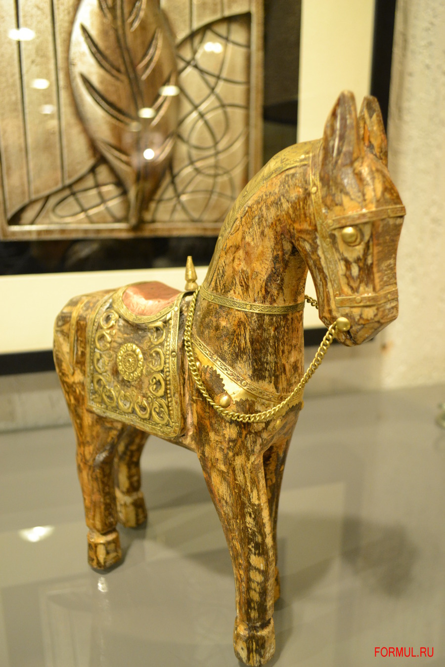 Конь изготовлен из мангового дерева и окрашен художником вручную
