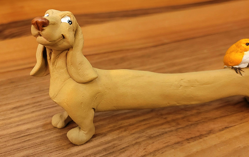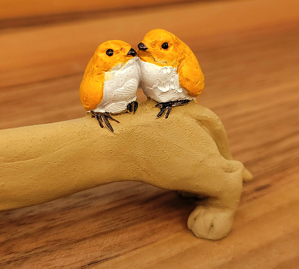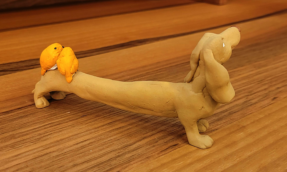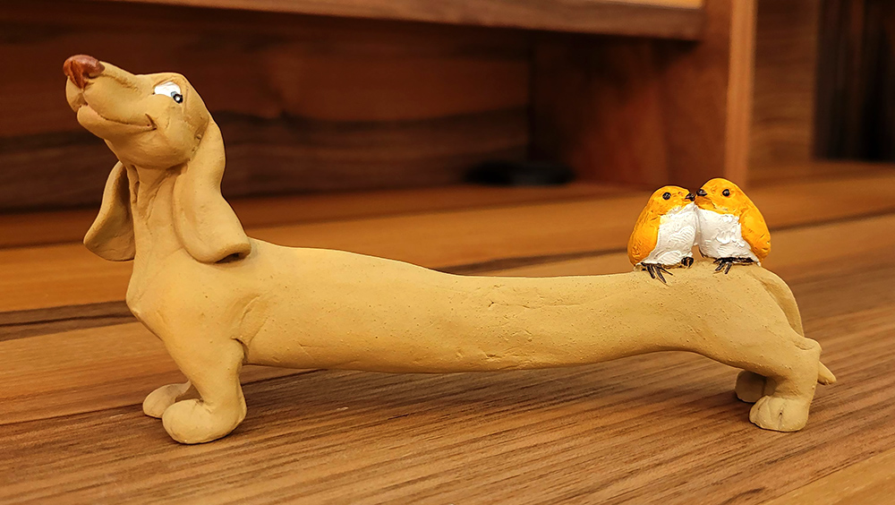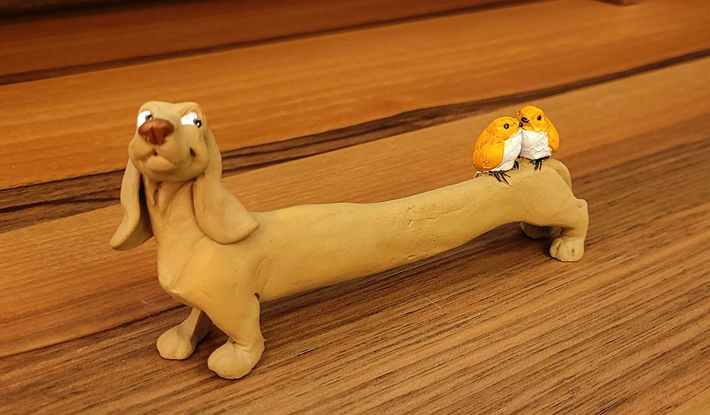 таксы из керамики и имеет теплую цветовую гамму, стопором для карандашей служат птенцы