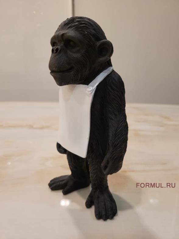 Статуэтка обезьянки выполнена из модельной смолы черного цвета. На фартуке можно написать (или прикрепить небольшой листочек с надписью) что-нибудь веселое или мотивирующее. Обезьянка оживит любой интерьер и будет вызывать улыбку у каждого, кто на нее взглянет. Дизайн и форма вдохновлены работами фабрики Seletti. В продаже так же есть версия в полностью белом цвете.