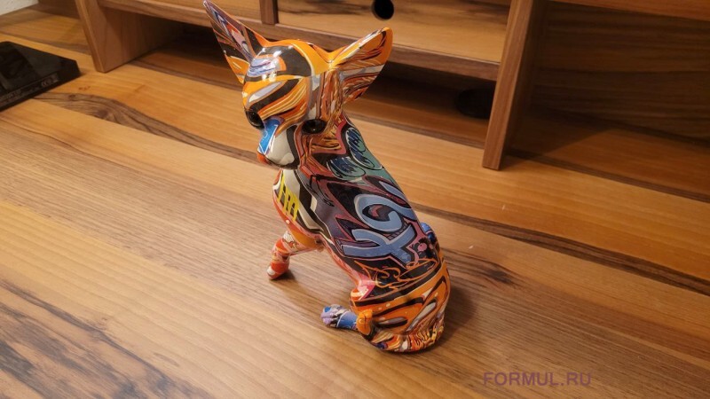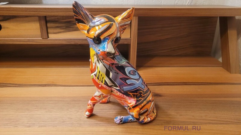 Этот чихуахуа обладает поразительной детализацией и реализмом, отражая их характерные черты: большие, внимательные глаза, изогнутый хвост и лишь характерный окрас шерсти тут заменен на ручную покраску выразительными цветами. Очаровательная статуэтка оживит ваш интерьер и придаст ему особый шарм.