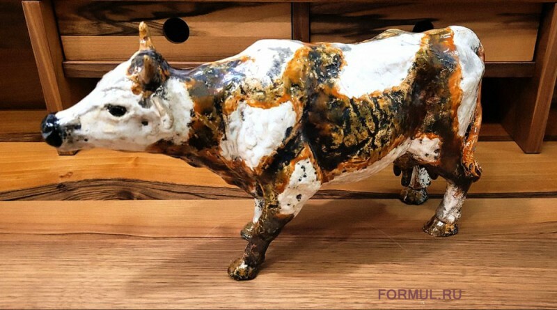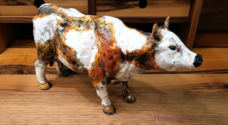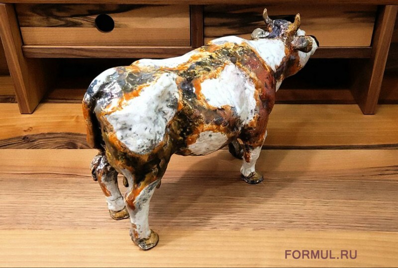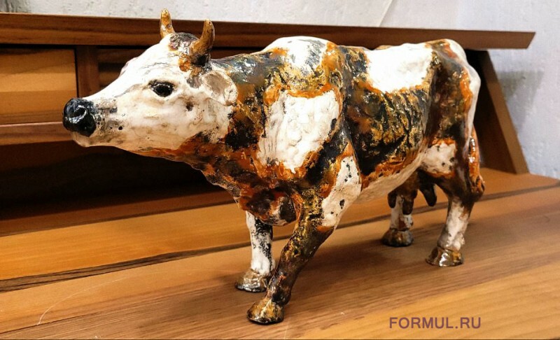 Перед нами впечатляющая керамическая скульптура коровы, выполненная вручную скульптором Евгением Воробьевым. Ее размеры (35 см в длину, 14 см в ширину и 21см в высоту) позволяют автору детально проработать и воплотить в жизнь каждую линию и изгиб этого прекрасного животного.