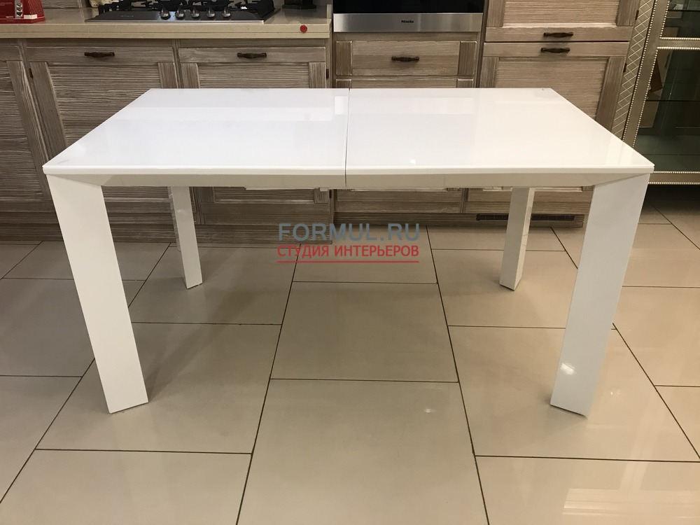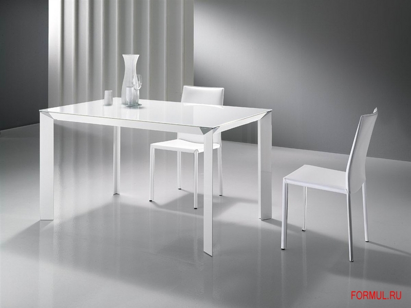 Тонкая геометрия конструкции белого стола, покрытого лаком, создает прекрасную гармонию цвета и форм.