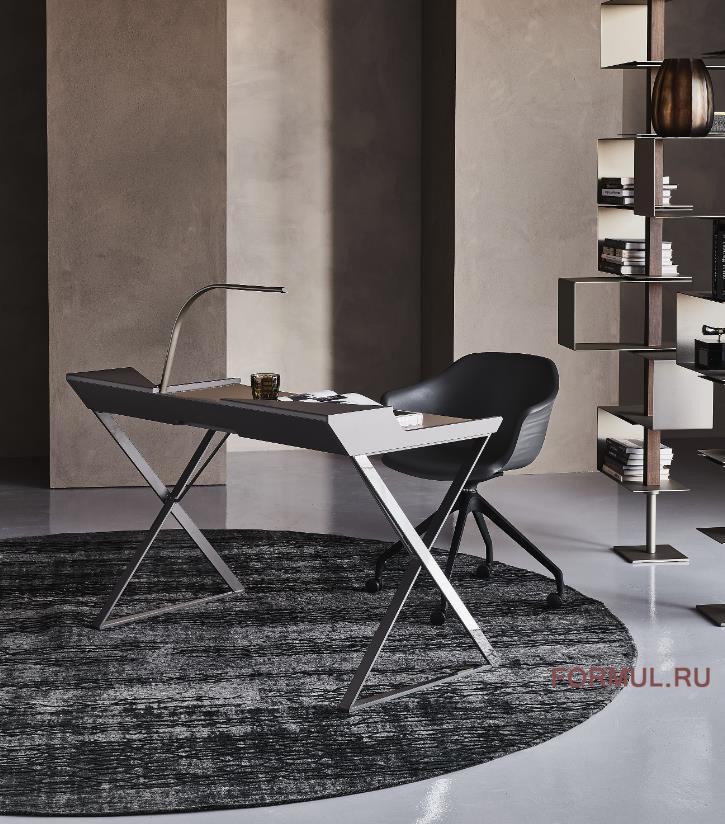 Qwerty - это современный письменный стол уменьшенного размера, разработанный Андреа Лукателло, идеально подходит для домашнего офиса или уголка для чтения. Выделяющийся геометрическими линиями, создающими ощущение тщательно продуманного баланса, дизайнерский письменный стол Qwerty, как будто, парит над тонкими стальными ножками, скрещенными в форме X. Кожаная накладка, дополняет стальную поверхность, делая ее удобной и элегантной.