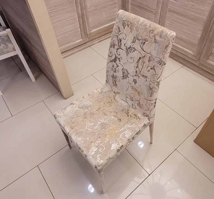 Ножки стула выполнены из крашеного металла. Дополняет эстетическое восприятие удивительная отделка из текстиля, внешне напоминающего дорогую королевскую парчу. Однако, это - мягкая и приятная на ощупь ткань, декорированная узором с растительными мотивами. Изящество изгибов и плавных линий, отливающих серебром на шикарной обивочной ткани, придают стулу фабрики Castellan истинно аристократическую роскошь.