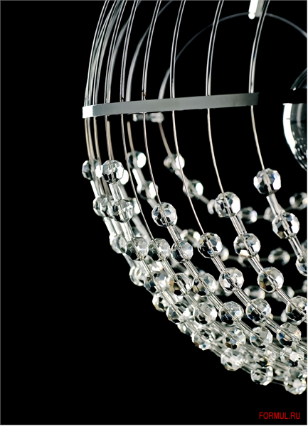 Металлический хромированный каркас – абажур круглой формы, украшенный крупными бусинами из прозрачного стекла во время включения лампочек отражается тысячами разноцветных бликов и наполняет комнату праздником, атмосферой радости, сказочного волшебства. При выключенных лампочках светильник смотрится не менее сочно и привлекательно. Знаменитое итальянское качество в каждой детали, модель продумана до мельчайших тонкостей.