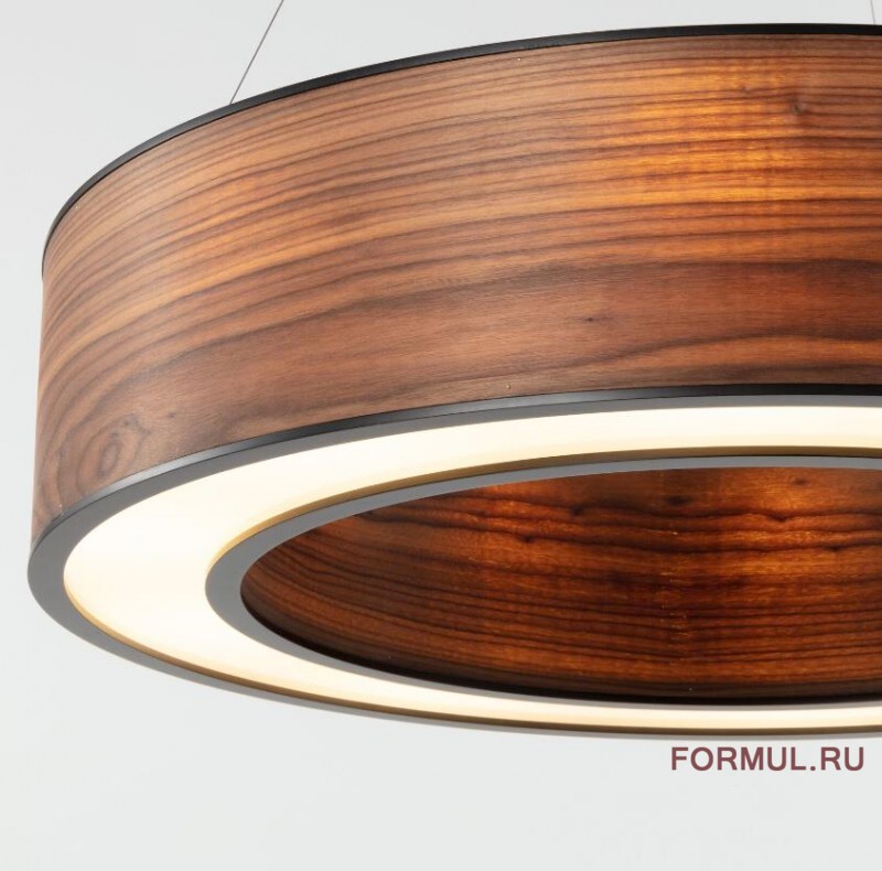 Светильник из натурального шпона дерева, который пропускает свет от лампочек. Подвесной светильник сделан в форме кольца и подходит для просторных помещений.