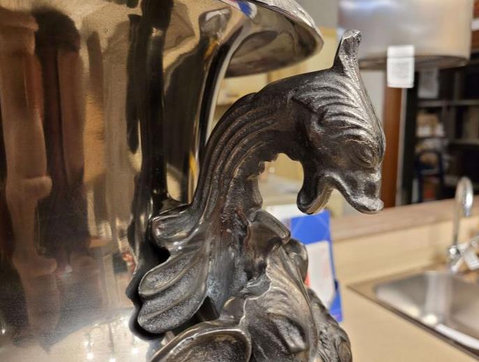 Создайте утонченный фокус в интерьере с чувством стиля с помощью вазы Château. Первоначально найденная в самом сердце богатых французских виноградников и великих замков, эта великолепная ваза вдохновлена французскими винными бокалами конца 19-го века. Он отличается очаровательной декоративной отделкой с двумя ручками-драконами и отделан никелем.