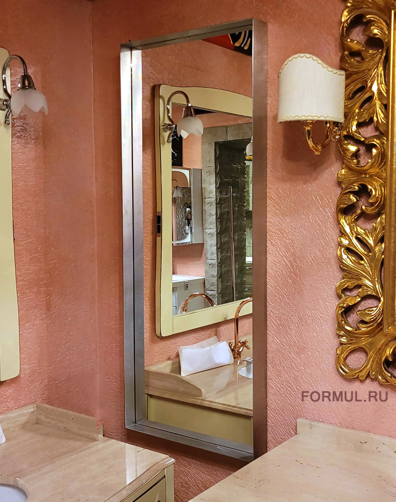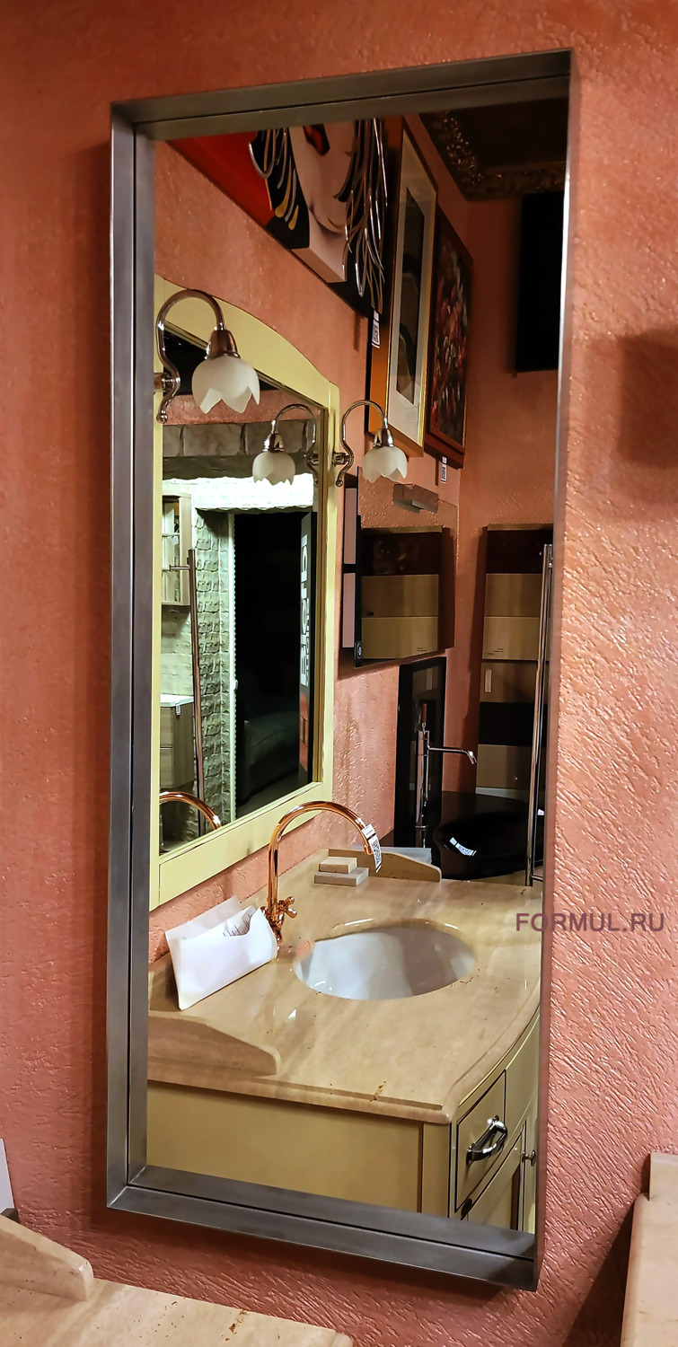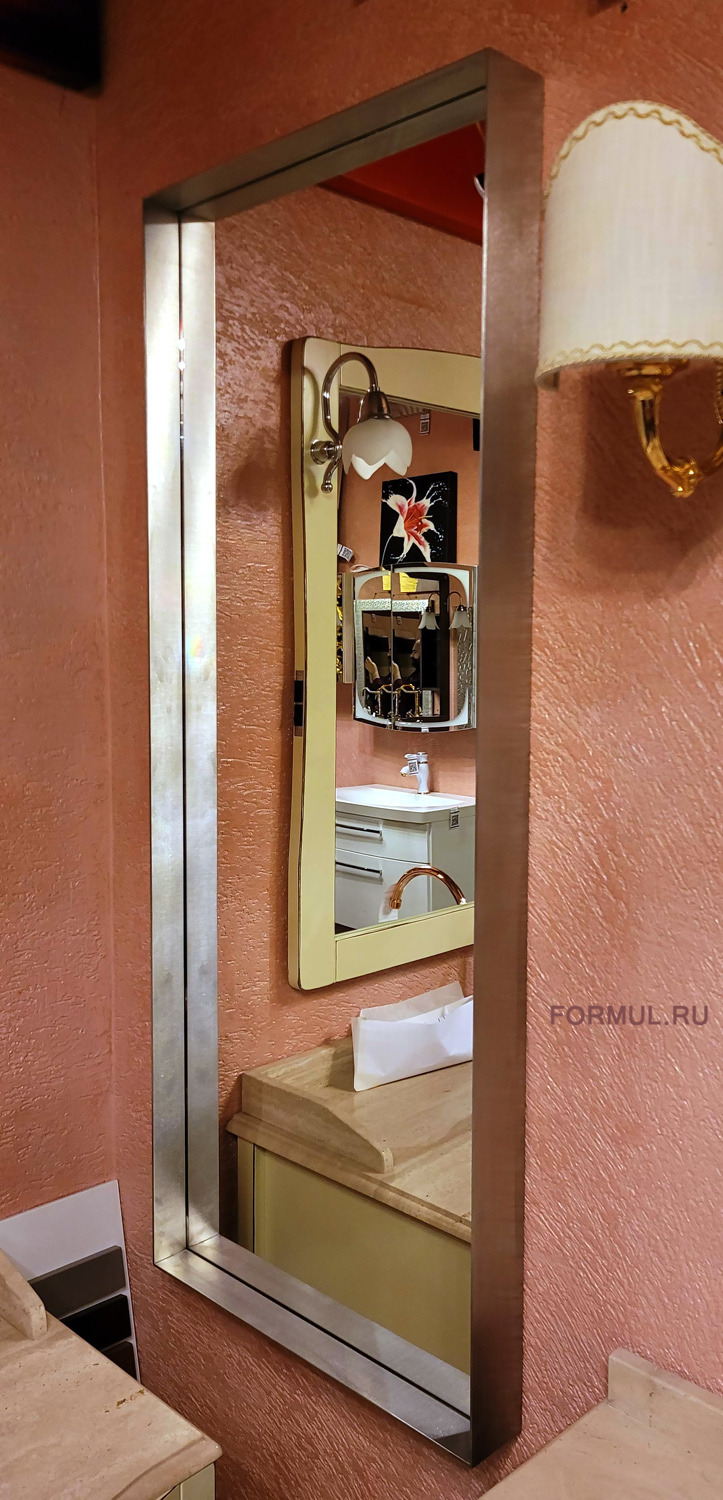 Стильное минималистичное зеркало, в строгом дизайне и рамой из нержавеющей стали. Зеркало устанавливается как горизонтально так и вертикально. Шоурум - Кирова 22А.