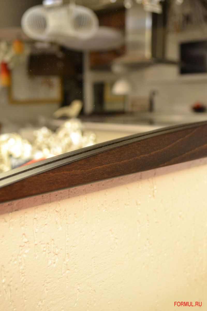 Благодаря деревянной раме, зеркало будет прекрасно смотреться в ансамбле с современной деревянной мебелью.