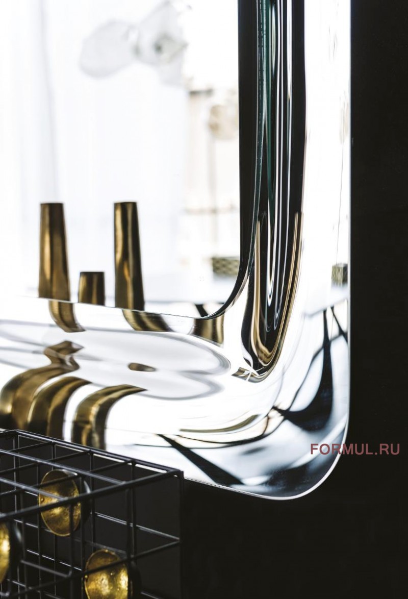 Современное зеркало Glenn полностью изготовлено из зеркального хрусталя. Закругленные углы и слегка изогнутый край создают иллюзорную раму, которая деликатно искажает отражения. Может быть установлено как вертикально так и горизонтально.