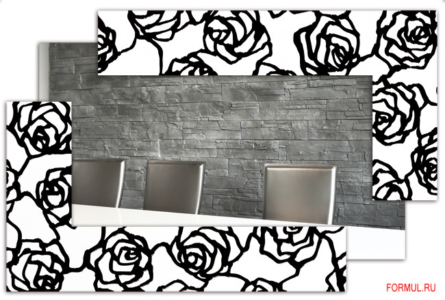 И в самом деле, трудно сдержать возглас восхищения, глядя на зеркала, производимые этой компанией. В данном случае, модель выполнена в виде двух элементов, не соединяющихся друг с другом. Элементы имеют форму «лежачей» латинской буквы «L» или русской буквы «Г» - кому как больше нравится. На белом широком каркасе причудливо и изысканно разместился изящный узор, имитирующий изысканные розы. Великолепие и роскошь данной модели позволяет говорить о ней как о шикарном предмете интерьера, способном повлиять на создание неповторимого индивидуального стиля Вашей гостиной или спальни.