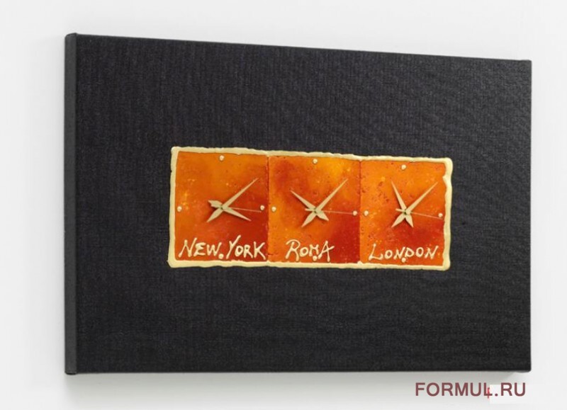 Да, перед нами не просто современная настенная декоративная панель, выполненная с большим мастерством, но и вполне функциональные циферблаты в количестве трёх штук, на которых, при необходимости, можно выставлять время из различных часовых поясов.