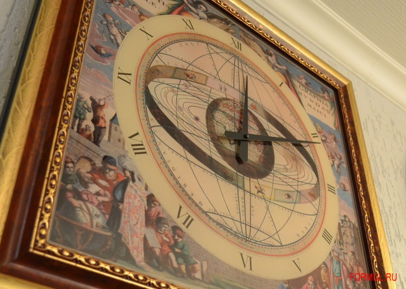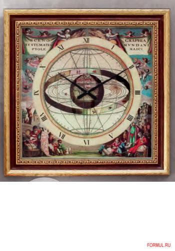 Часымодель Tolomeo Закаленное стекло, художественная шелкотрафаретная печать, рама из резного дерева с золотой фольгой.