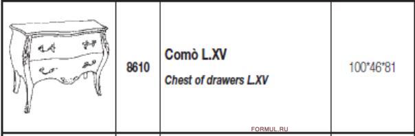 Комод Art. 8610 от итальянского бренда Salda — это воплощение элегантности и роскоши в стиле Louis XV. Изящные изогнутые формы, благородные материалы и ручная работа делают его настоящим произведением мебельного искусства. Два просторных ящика на деревянных направляющих обеспечивают удобное хранение, а прочная столешница добавляет функциональности. Размеры комода составляют 100 см в ширину, 46 см в глубину и 81 см в высоту. Изготовлен из массива бука, а ручки и орнамент выполнены из патинированной латуни.
