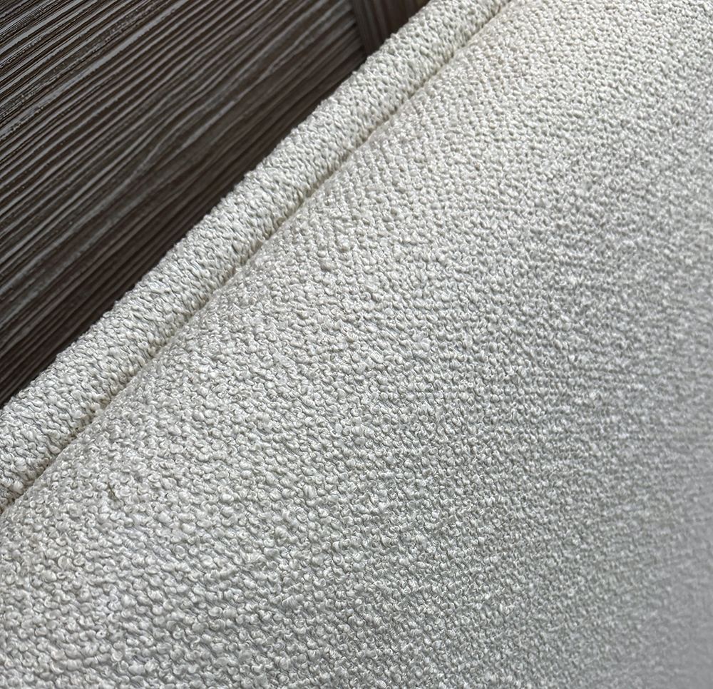 Широкое изголовье с мягким, обволакивающим дизайном призвано сделать моменты отдыха такими же уютными, как естественные объятия. На каркасе из массива ели лежит сиденье из пенополиуретана, обтянутое холлофилом и хлопчатобумажной тканью. Подушки спинки выполнены из пенополиуретана и обтянуты холлофилом с хлопковой тканью.
